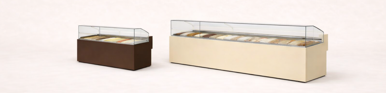 Gebakstoonbanken en gebaksvitrines voor een overzichtelijke en gekoelde presentatie van producten. Binnen deze collectie vind je verschillende modellen die geschikt zijn voor professioneel gebruik. Afhankelijk van het model zijn de vitrines en toonbanken verkrijgbaar in meerdere afmetingen en kleuren, zodat ze kunnen worden afgestemd op het interieur van de winkel.