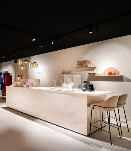 In een winkel draait het niet alleen om wat je verkoopt, maar om hoe het wordt gepresenteerd. Materialen, structuren en afwerking bepalen hoe producten overkomen en hoeveel aandacht ze krijgen.