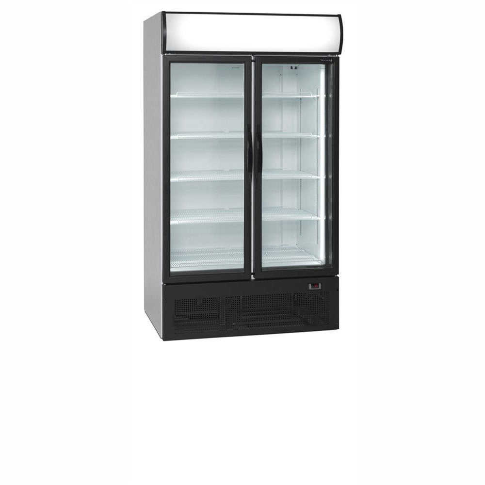 De FSC-serie displaykoelers met 2 of 3 deuren met een verlichte kap biedt een uitstekende ontwerpkwaliteit tegen een concurrerende prijs. Kies tussen kasten met witte of zwarte buitenzijde met zwarte glazen deuren met aluminium frame – scharnierend of schuivend. De planken zijn verstelbaar, waardoor de FSC-serie een flexibele oplossing is. Dit zorgt voor een geweldige productpresentatie in combinatie met een krachtig geventileerd koelsysteem dat wordt geregeld door een elektronische thermostaat. Veel modellen zijn ook verkrijgbaar zonder kap (FS-serie).