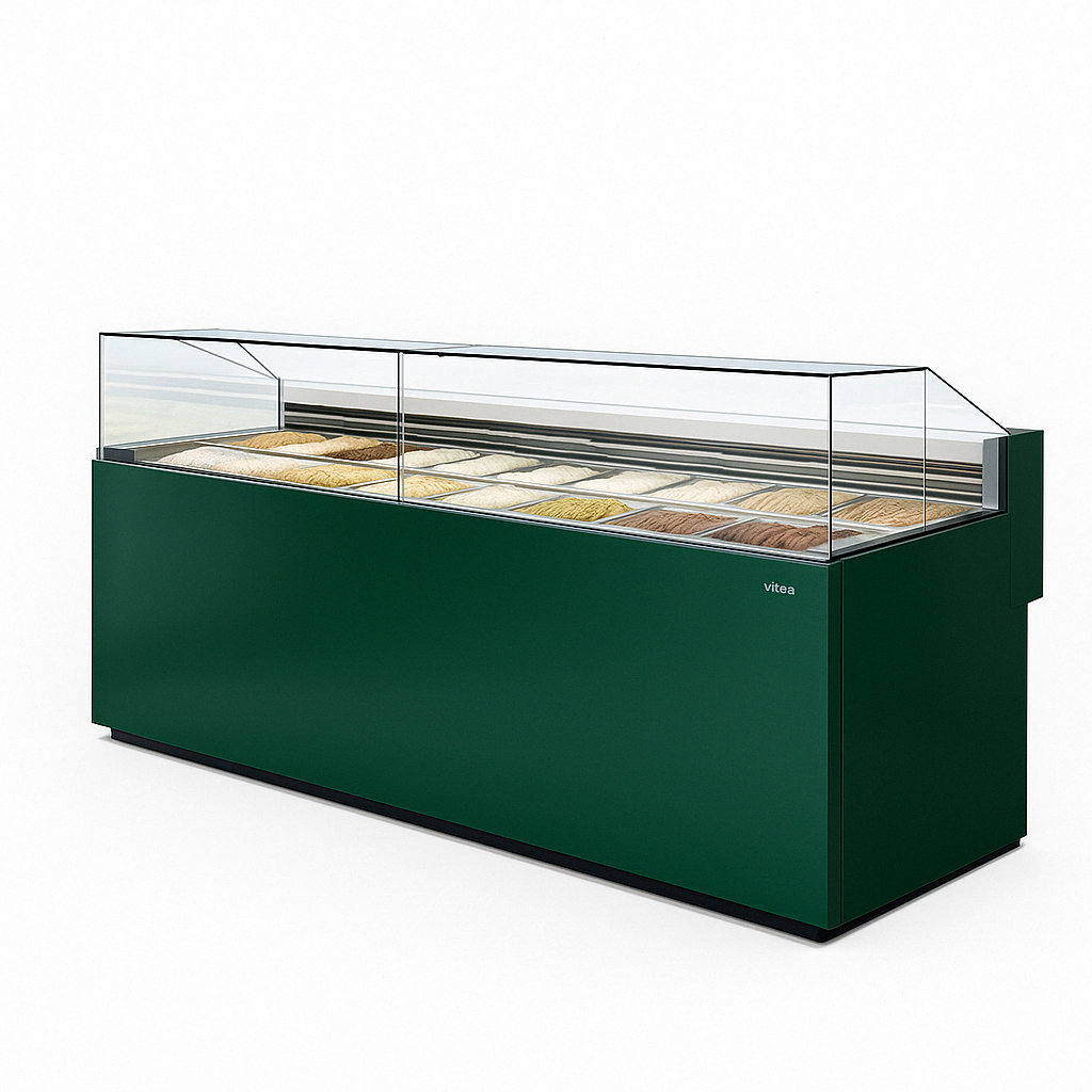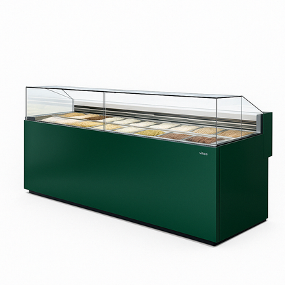 Deze energiezuinige gekoelde vitrine biedt een hoge capaciteit en grote displayruimte voor uw gebak. Dankzij het R290 koelmiddel en het ventilatiesysteem blijft uw product optimaal bewaard. Het geharde voorste glas en het roestvrijstalen werkblad zorgen voor een professionele uitstraling en hygiëne. De CFC-vrije polyurethaanisolatie en automatische ontdooiing dragen bij aan een efficiënte werking. Met elektronische besturing en ventilatoren is het onderhoud eenvoudig en betrouwbaar. Perfect voor bakkerijen en horecagelegenheden.