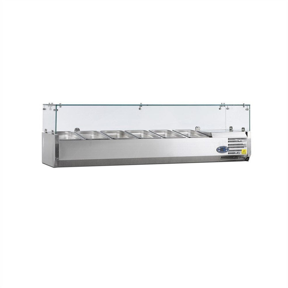 Roestvrij staal, Statische koeling, Glazen structuur voor bescherming van voedsel, Instelbare voet, Geschikt voor GN1/3 bak(ken) (niet meegeleverd)