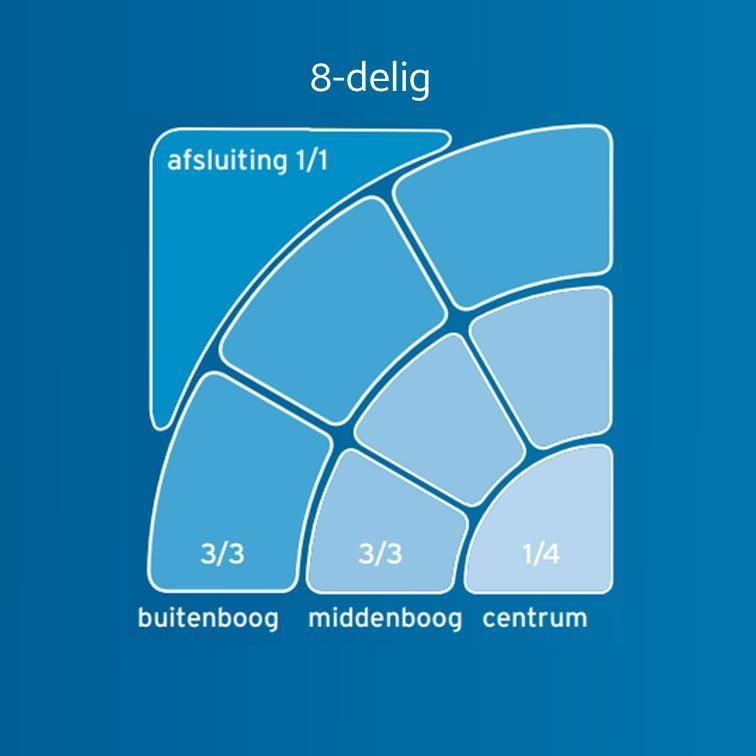Losse schalen van de toonbankschalenset BLOK en CIRKEL, van de 84x84cm set. De set bestaat uit 8, 11 of 13 schalen. Welke schalen je nodig hebt licht aan de buitenmaat van de set (80x80, 84x84 of 87x87cm) en uit hoeveel delen je schalenset bestaat. In de foto's is een overzicht opgenomen welke schalen bij welke set horen.