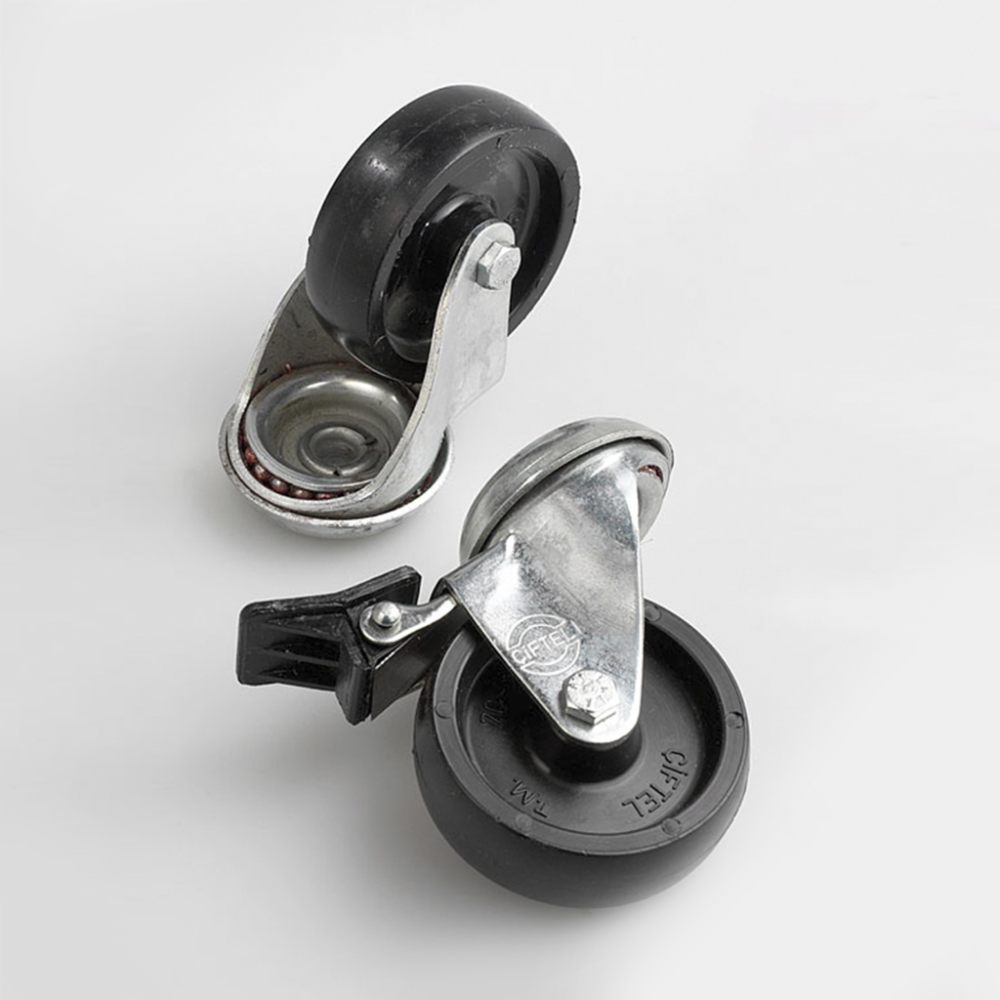Inclusief een volledige set manden, Platte schuifdeksels met slot, Thermometer, Poedergecoate witte binnenvoering, Zwenkwielen met rem