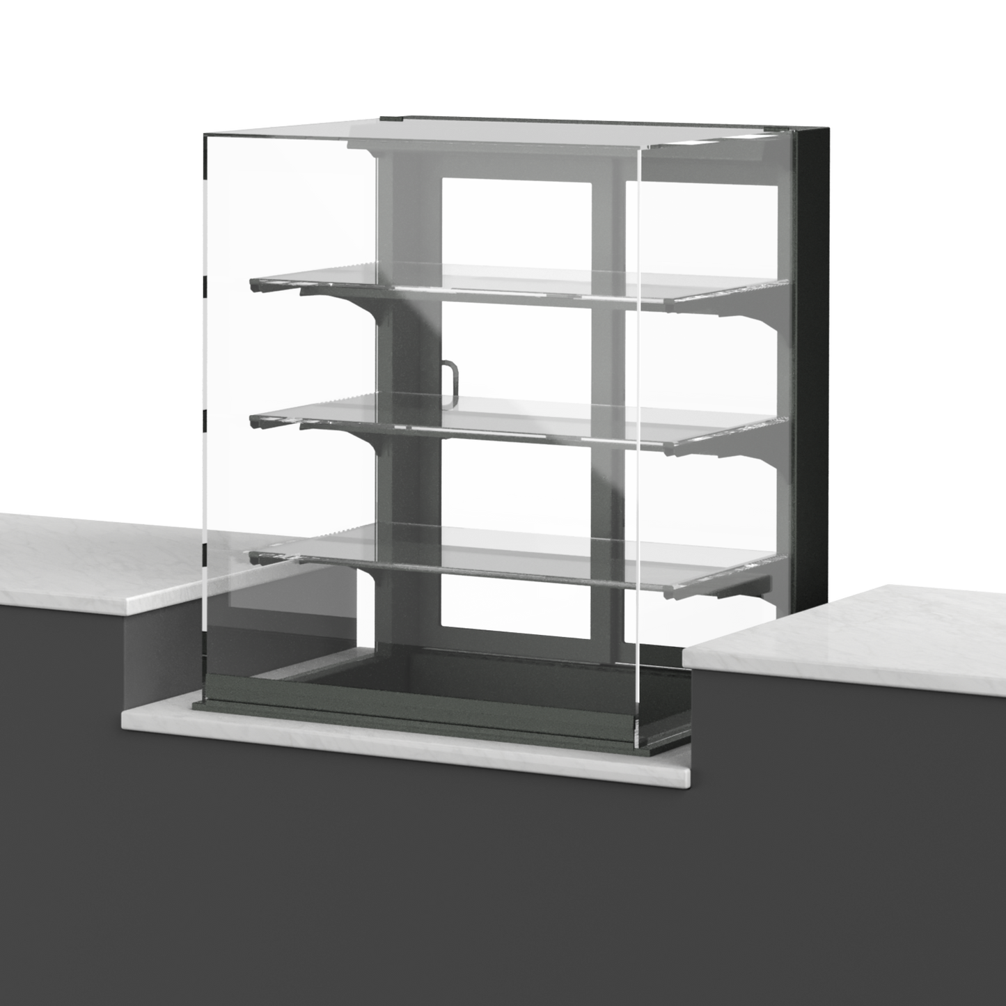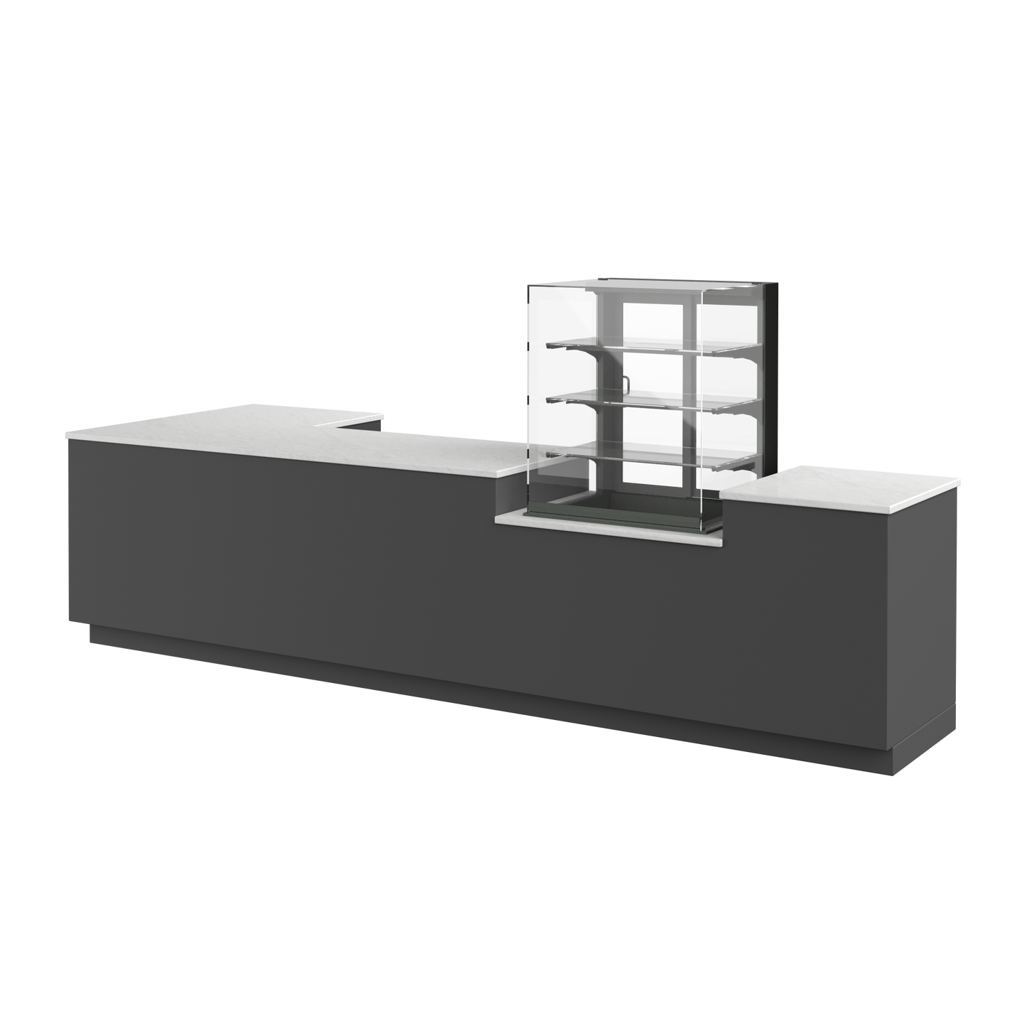 Geforceerde koeling voor het koelen van patisserie en gebak. Aan de klantzijde heeft deze koeling een rechte glasconstructie van veiligheidsglas die naar buiten kan worden gedraaid voor eenvoudige reiniging. De schappen van veiligheidsglas zijn in hoogte verstelbaar en kunnen worden gekanteld voor een flexibele presentatie. Twee luchtsnelheden kunnen worden geselecteerd voor verschillende producten.
